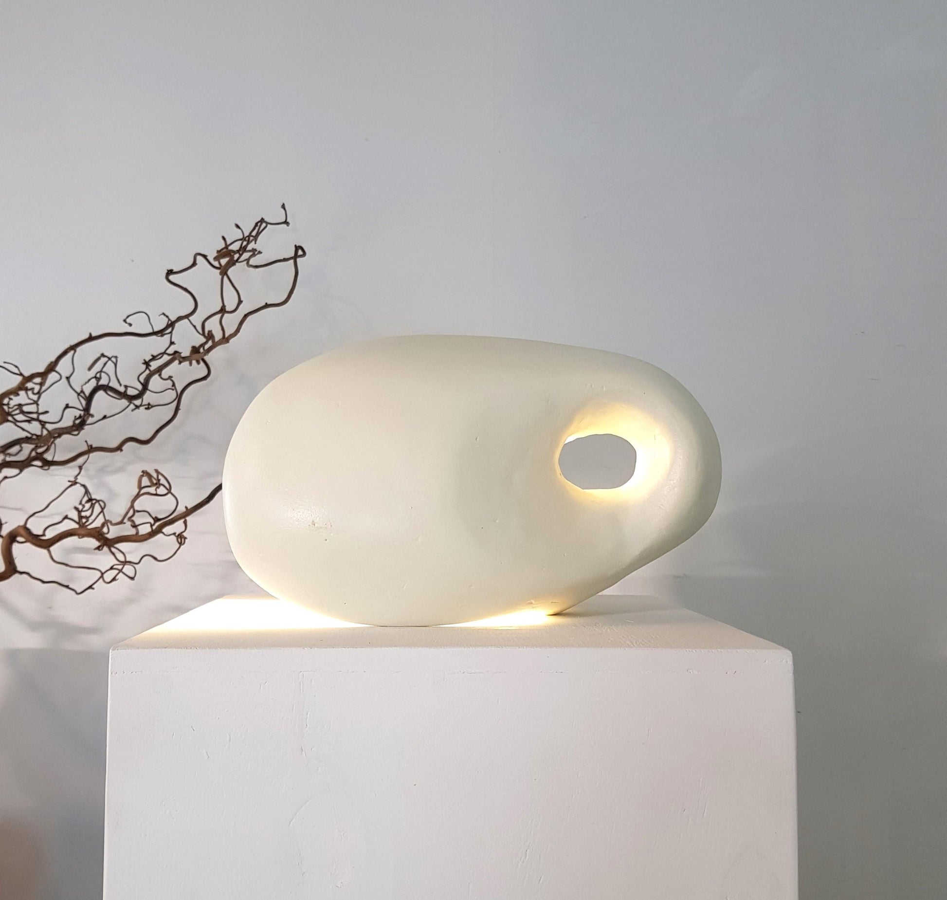 The lamp emits a soft, calming light creating a warm, ambient glow that transforms any space into a peaceful retreat. The intricate carvings allow subtle shadows to dance along its surface, enhancing its ethereal charm. Perfect for bedrooms, living rooms, or cozy nooks, this pebble-inspired lamp not only illuminates but also adds a touch of coastal beauty and artisanal elegance to any interior.